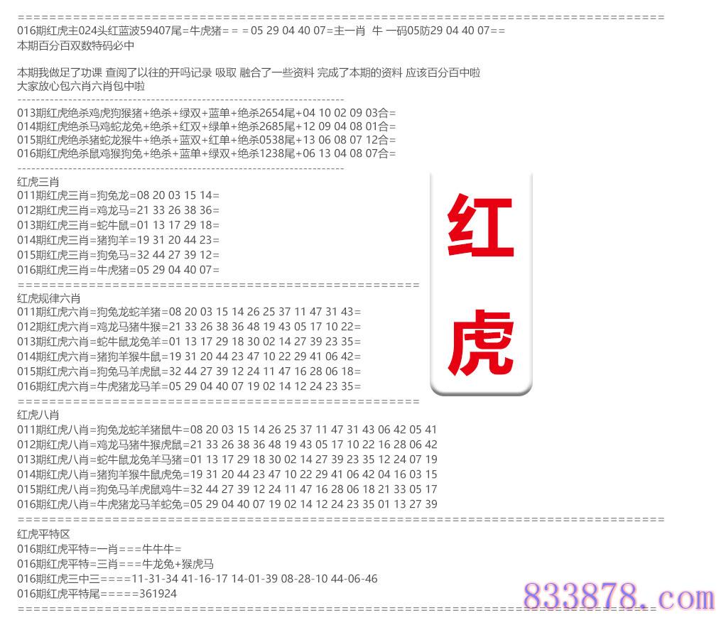 016期:红虎资料